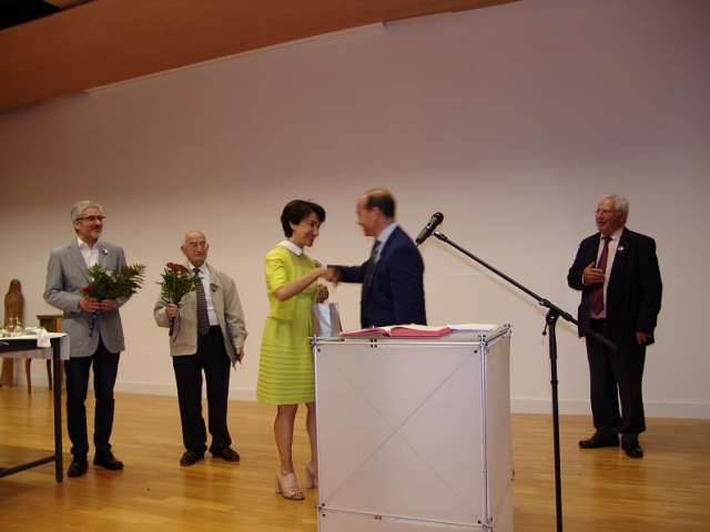 No final da Eucaristia foram chamados ao palco antigos professores e Irmãos, antigos alunos, diretor da escola e presidente da Câmara para receberem da Associação um ramo de flores, precedendo a cerimónia de inauguração da nova praceta.