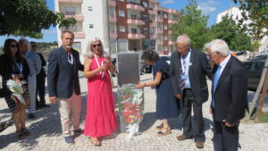 Tirada a foto de família os antigos alunos aproximaram-se da Praceta S. João Batista de La Salle onde foi colocada uma coroa de flores junto à placa toponímica.