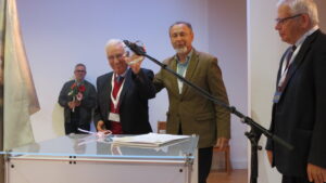 No final da Eucaristia. Carlos Borrego, presidente da Assembleia da Associação dos Antigos alunos, reconstituiu alguns eventos e marcos desta caminhada de 50 anos, e dos seus protagonistas. Os encontros iniciais… de Évora, do Ribatejo, de Lisboa, do Porto, de Barcelos, de Braga. Tanto a Vereadora da Câmara Municipal de Abrantes, Raquel Olhicas, como o representante da Congregação, Ir. Joaquim, e também o presidente da Associação, José Carlos Ferreira, realçaram essa resiliência dos antigos alunos, os quais, 50 anos depois, continuam vivos, manifestando a sua gratidão por tudo o que receberam dos Irmãos. Duas placas foram entregues, uma à vereadora da Câmara e outra à Congregação para perpetuar a efeméride.